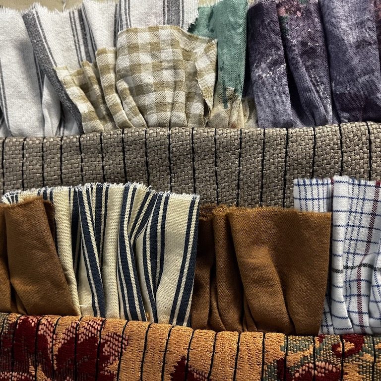 Toutes nos créations sont confectionnées dans du linge de maison soigneusement sélectionné lors de nos chines, mais aussi à partir de tissus et articles de mercerie issus de stocks dormants.